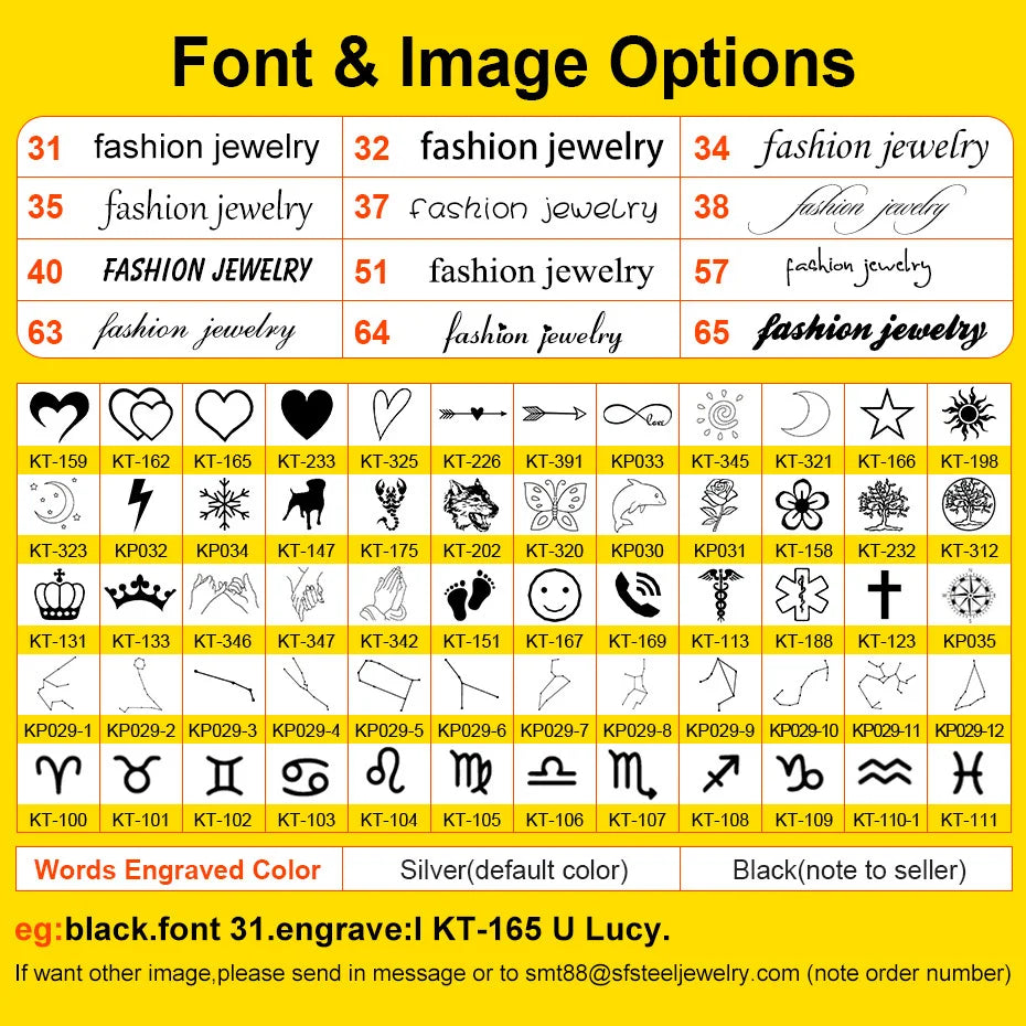 eg: Black font 50, engrave : Lucy (165) forever. |
