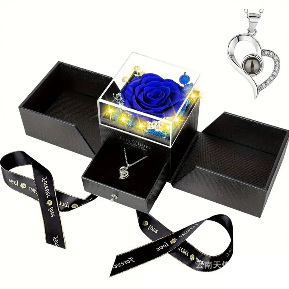 Eternal Red Rose with "I Love You" necklace in 100 languages
