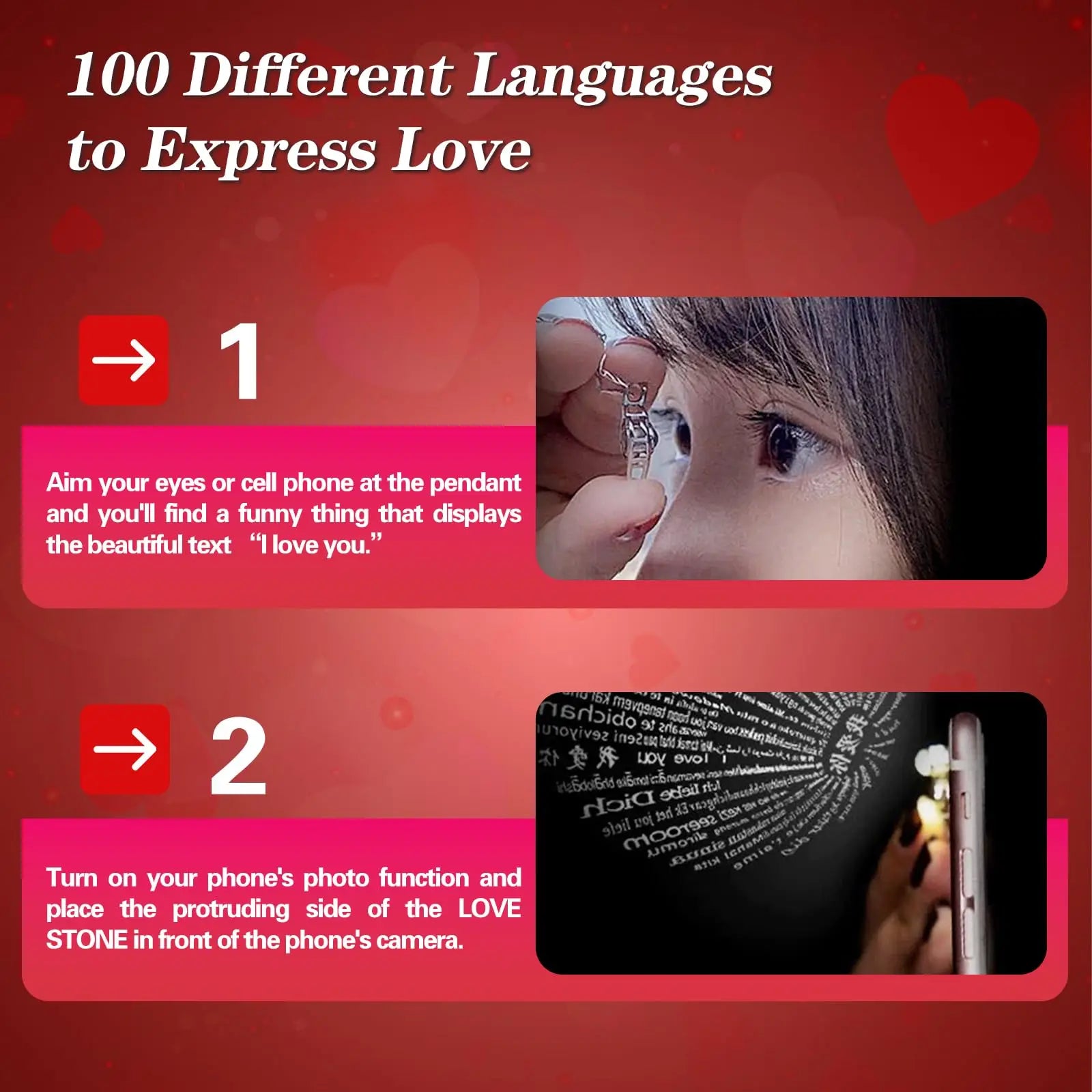 Heart-shaped necklace: The necklace is engraved with "I love you in 100 languages", suitable for the drawer, 100 languages represent 100 ways of love. This is a beautiful luxury gift that can also be stored in a box with other jewelry or rings