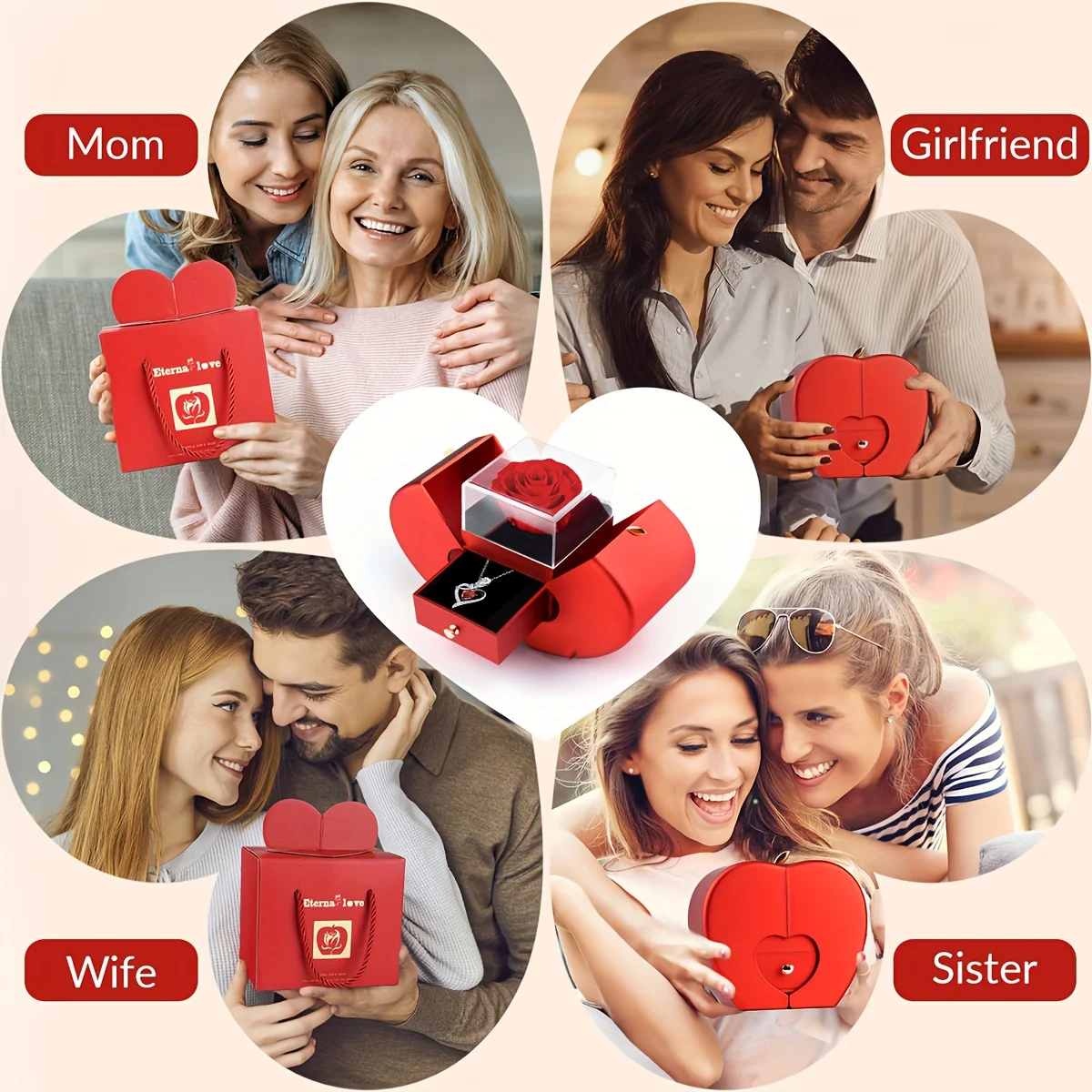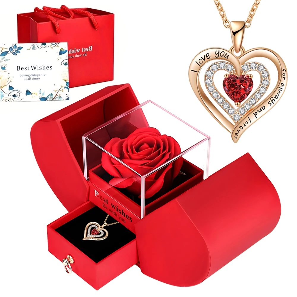 Eternal Rose Jewelry Box with Heart Shaped Necklace